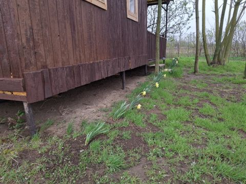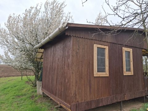 A faház kellemes ligetes környezetben bújik meg.