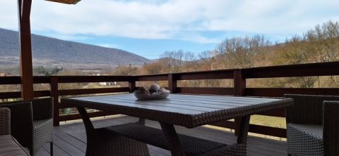 Ház: 148 nm belső két szinten, 15nm-es panorámás fedett terasz, nappali + 5 szoba, 2017-es építés.
