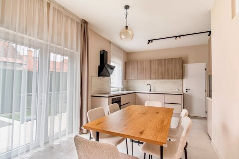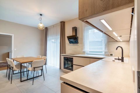 A családi ház zárt sorú beépítésű és telekhatártól telekhatárig ér. 2025-ben teljeskörű felújításon esett át az ingatlan! Melynek keretében új tetőt, homlokzati szigetelést és új nyílászárók kerültek beépítésre. A ház belsejét belső építész tervezte figyelembe véve a jelen kor trendjeit és igényeit. Magas minőségű burkolatok, szaniterek és beépített bútorok kerültek a felújítás során beépítésre, növelve a komfort érzetet. A konyhabútor prémium minőségű német bútor, teljes gépesítéssel, 12 személyes mosogató géppel és beépített mikró sütővel felszerelt! Az előszoba bútornak és a gardrób szobának köszönhetően az ingatlanban rengeteg tároló kapacitás került kialakításra. Továbbá a ház alatt egy, 20m2-es pince található, ami további tárolási lehetőséget biztosít és szintén teljeskörű felújításra került. Itt víz vételi lehetőség továbbá, víz összefolyót is kialakítottak.