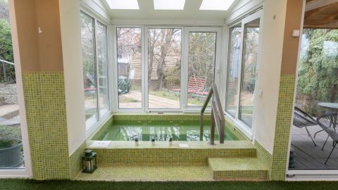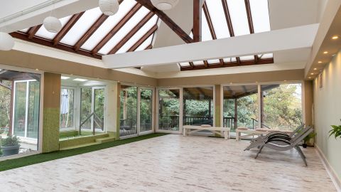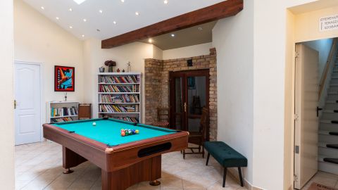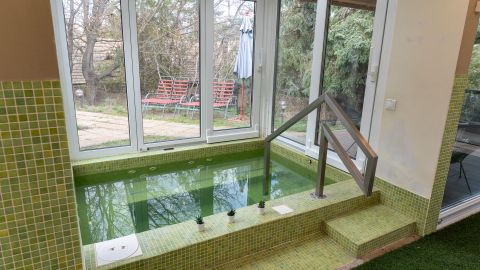 A lakóház földszintjén wellness részleg került kialakításra, amely magában foglalja a jakuzzit, többféle szaunát, masszázsszobát, öltözőket és zuhanyzókat, ideális privát vagy üzleti célú használatra egyaránt. Egy beltéri medence is kialakításra került, amely ideiglenesen le van fedve, és jelenleg rendezvény- illetve többfunkciós térként használják. A medence teljes gépészete megmaradt, így bármikor, jelentős átalakítás nélkül visszaalakítható eredeti állapotába, amennyiben az új tulajdonos ezt kívánja.
