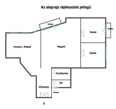 Az ingatlan nettó 119 m2 alapterületű, nappali + két hálószoba kialakítású. Az ingatlanban egy különálló fürdőszoba, wc kialakítás adott, ezen felül, elszeparált konyha + étkező könnyedén átalakítható, egybenyitható. A konyhához kamra is tartozik, külön szellőzéssel ellátott. A lakáshoz két terasz tartozik, ahonnan kiváló panoráma élvezhető a város legszebb létesítményeire, valamint a Széchényi hegyre.