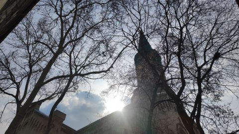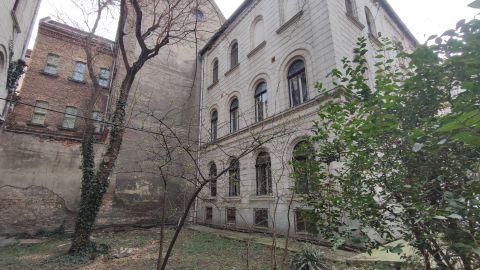 Entering the historic garden from Rákóczi Road, you pass a renovated neo-Romanesque church, currently operating as a cultural venue. About 100 meters further inside, there is a two-storey building that functioned as a school in the 1800s. According to local historical sources, Sándor Petőfi, Hungarys famous poet, once studied here.