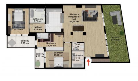 Belváros + ekkora terasz + jacuzzi + 3 hálószoba + parkoló + modern épület.