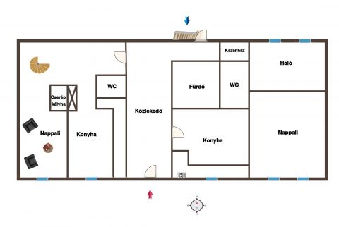Ez az egyedi ingatlan két különálló lakásból áll (külön bejárat), melyeket egy közös folyosó köt össze.