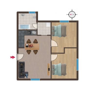 A délnyugati tájolásnak köszönhetően a lakás egész nap világos, kellemes hangulatú, miközben energiatakarékosan fenntartható.