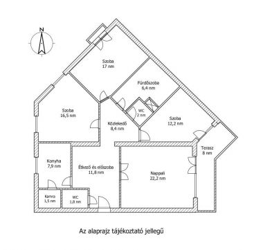 Az ingatlan 4 külön nyíló szobával, külön konyhával étkezővel, valamint két fürdőszobával és kamrával rendelkezik, így ideális választás nagyobb családnak, többgyermekeseknek vagy akár otthoni munkavégzéshez is. A lakás két irányba tájolt DK-ÉNY, ennek köszönhetően világos és jól átszellőztethető.