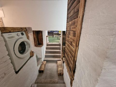 Az ingatlanba néhány lépcsőfokon lehet lemenni, ekkor egy tágas előtérbe jutunk, ami egy kisebb szintkülönbséggel csatlakozik a nappalihoz. Az egész tér egybefüggő, szép világos és a nagy belmagasságának köszönhetően a térérzet is kiváló.